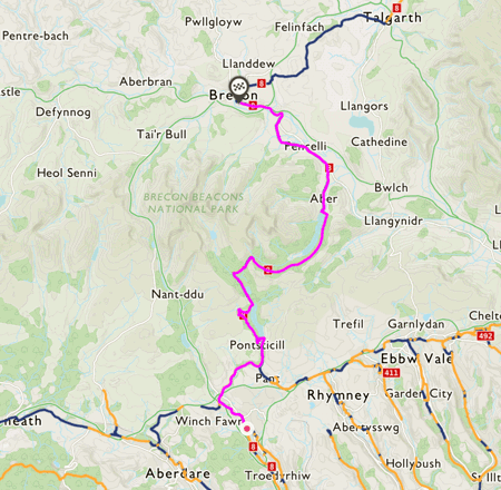 This route is for those who would like to get into the heart of the Brecon Beacons National Park, but it starts from possibly the most famous of South Wales’ former mining towns, ending in the picturesque rural town of Brecon.