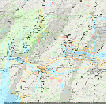 It continues westerly towards Stirling past Dalmeny Estate and Blackness Castle; instantly recognisable in the imposing shadows of the Forth Bridges.