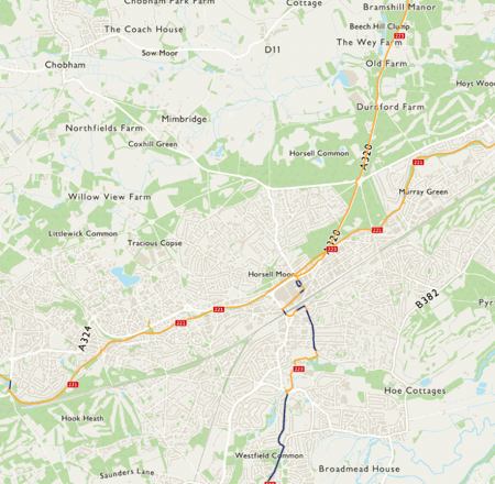 There are a number of parks and recreation grounds along the way, together with refreshment stops and shops in Woking.