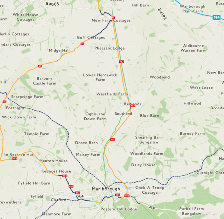 Starting in Marlborough it heads out to the surrounding countryside on a peaceful, traffic-free path. Crossing the River Kennet, the path travels through the picturesque villages of Ogbourne St Andrew and Ogbourne St George before arriving in Chiseldon.