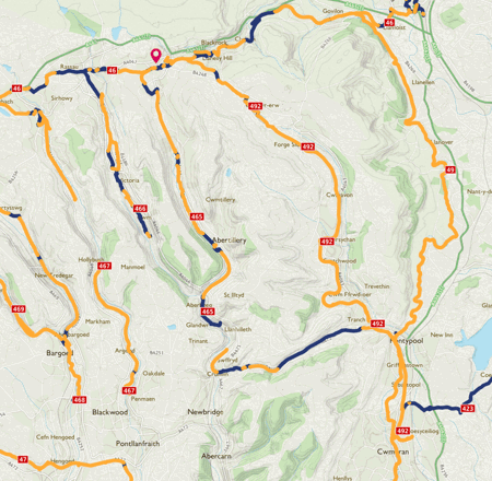 Starting at Forge Hammer in Cwmbran National Route 492 branches from National Route 49 and runs northwards along a traffic-free to Pontypool.
