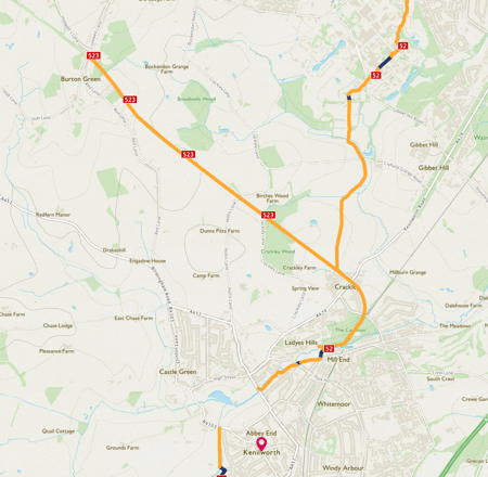 National Route 523 runs from the outskirts of Kenilworth to Burton Green. This traffic-free walking and cycling route provides an essential link between local villages, the University of Warwick, Tile Hill railway station and Kenilworth town centre.