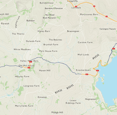 This route is at the southern end of the Peak District National Park.