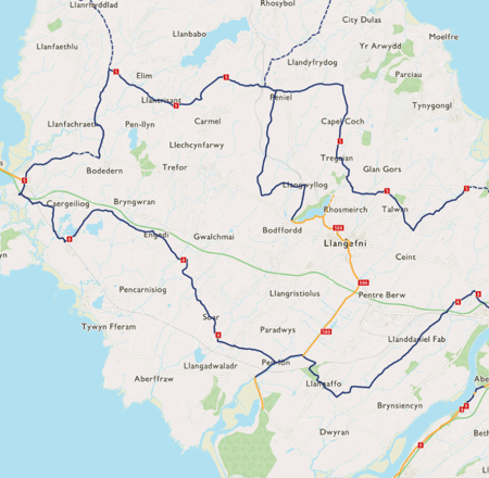 It continues on to the Llyn Cefni reservoir before reaching National Route 5 at Llanerch-y-medd.