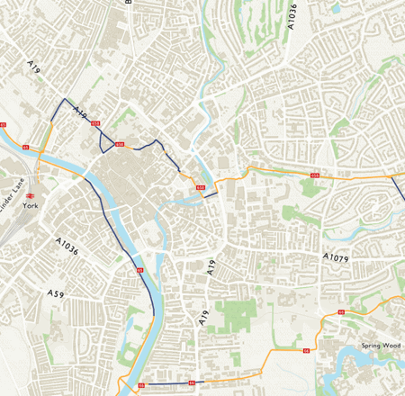 This great, short route travels between Scarborough Bridge and Tang Hall. Part on-road and part traffic-free, you'll travel across the northern city centre between the River Ouse, the Minster, and the western end of the Foss Islands Path.