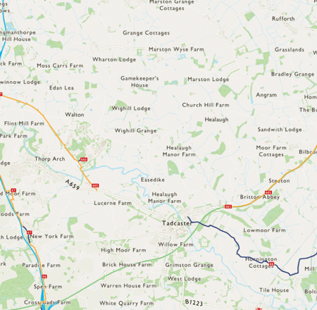 The next open section is from east of Tadcaster. It follows the verge of the A64 heading east. At Copmanthorpe it connects with National Route 65 via which you can continue into the historic city of York.