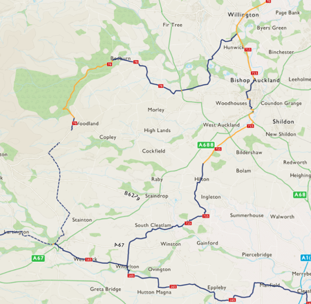 In combination with a stretch on National Route 165, this route offers an alternative to National Route 70 along the W2W route between Barnard Castle and Willington.