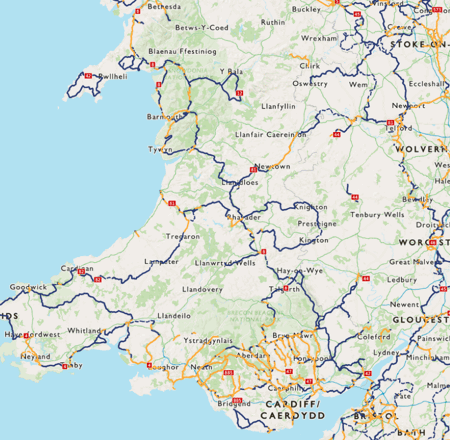 This section passes through the heart of Wales on minor roads, railway paths, forestry tracks and ancient coach roads.
