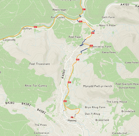 The route then travels into Cymmer.