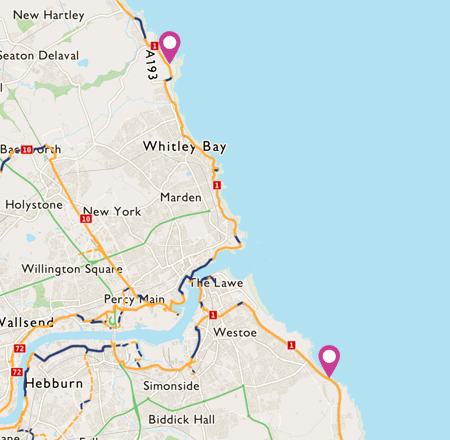 On the way you will pass the Old Bouys artwork which celebrates the confluence of three National Cycle Network routes - 1, 10 and 72. The route also provides you with great views of Tynemouth Priory.
