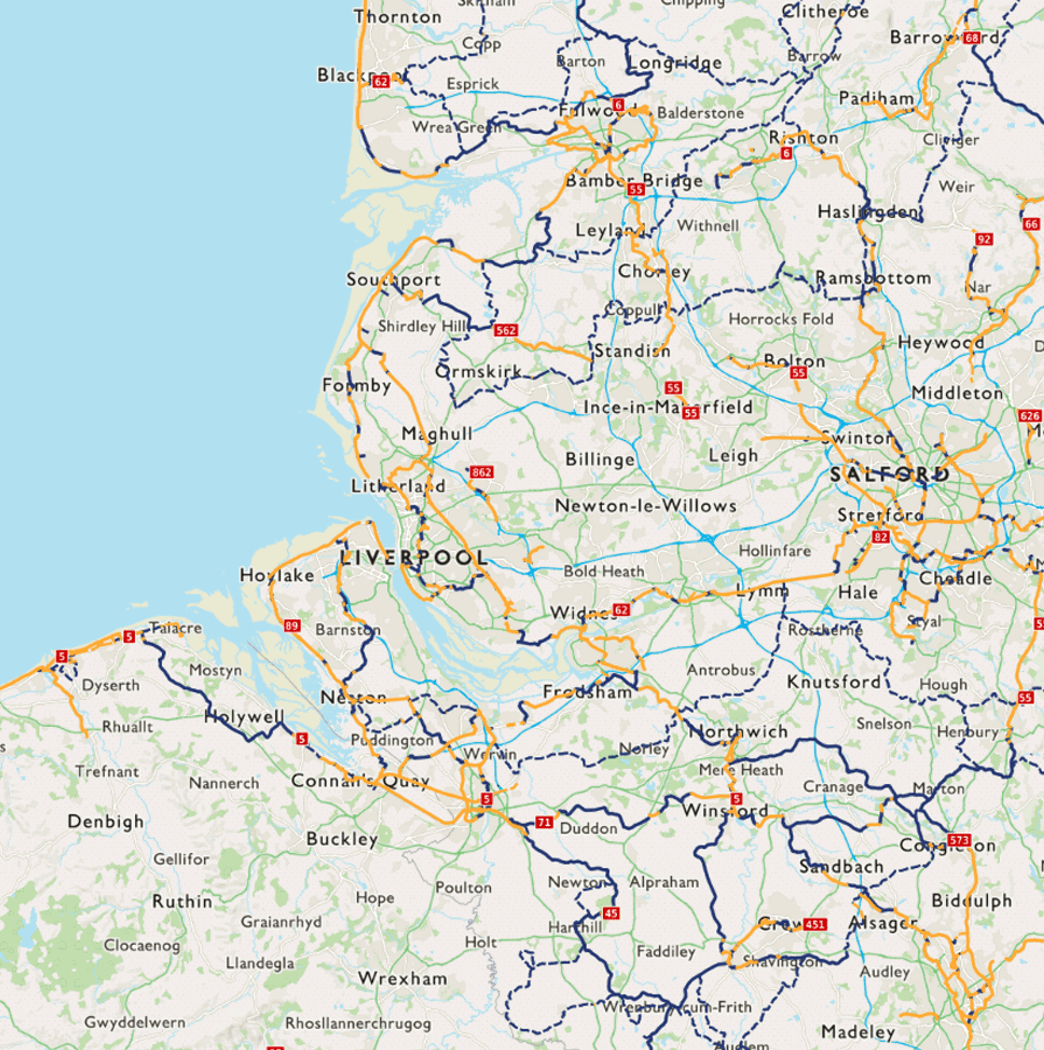 Keep an eye out for the hexagon on our route pages. This symbol means that some or all of the route is not on the Network.