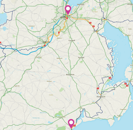The Belfast to Newcastle Coastal Route travels around Strangford Lough providing a link between Belfast, Comber, Downpatrick and Newcastle.