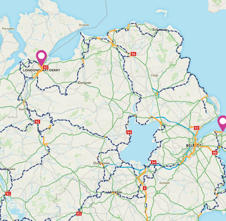 The major ones of these are alongside the Foyle in Derry; from Mossley to Belfast, and along the coast into Bangor.