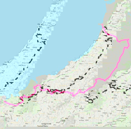 You'll then turn southwest to cross the watershed and drop down into the valley of the River Teifi which is followed all the way to the coast at Cardigan.