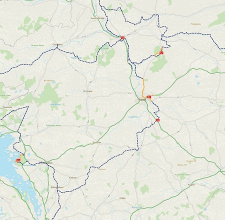 From here the route travels onto the small village of Pettigo, travelling past the beautiful Lough Derg.