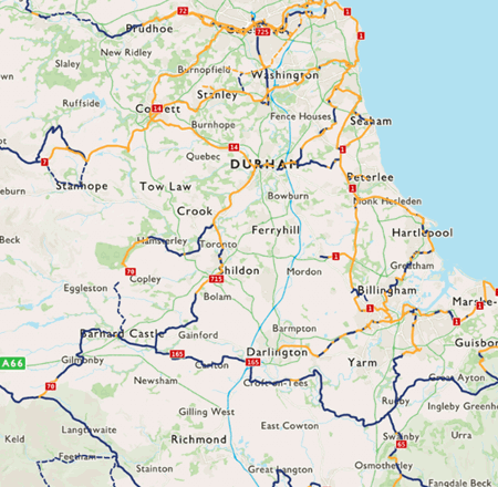 Numbered as National Route 14, blue signposts will guide you along its snaking 80 miles (129km) between Middlesbrough and South Shields.