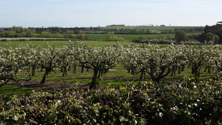 Blossom on orchards near Route 1 in Upchurch, Kent. Credit: Kevin Thornton