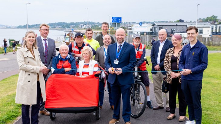 Starting near the train station at the west end of Marine Drive, what was once a narrow, partially lit and on-road section of National Cycle Network Route 1 has been replaced with a new 3-meter-wide traffic-free, shared-use path.