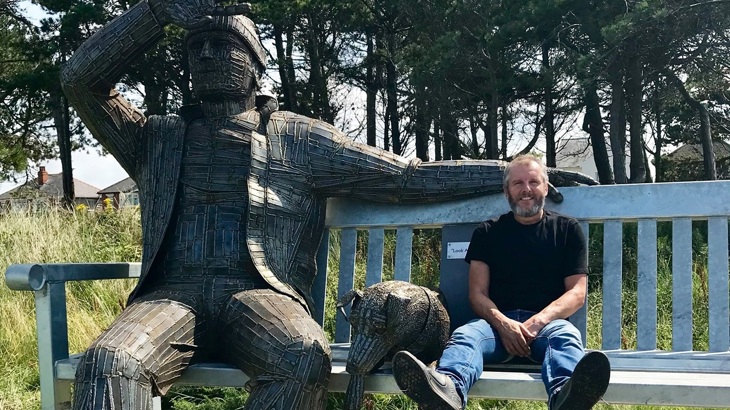 Artist Ray Lonsdale with 'Big Fella' in Silloth
