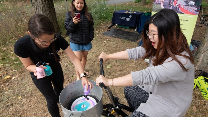Local people had a go on the art bike, using pedal power and paint to make a piece of art. Photo: Mark Radford/Walk Wheel Cycle Trust