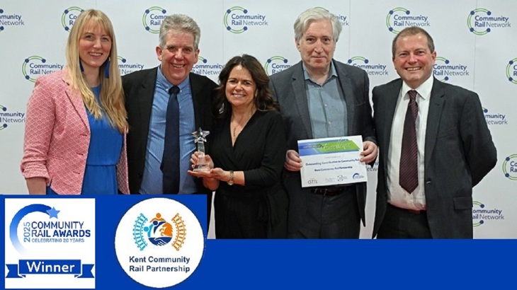 The Kent Community Rail Partnership (CRP), which is managed by Walk Wheel Cycle Trust, were recognised at the annual Community Rail Network 2025 Awards for their 22-year-contribution to community rail. The award celebrates their work in Kent which promotes the various ways of travelling sustainably - whether walking, cycling or by bus, as well as their engagement with young people, social inclusion projects, and so much more.
