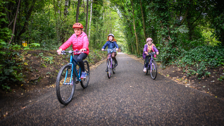 Primary school children cycling along the National Cycle Network Route 75. Photo credit Andy Catlin
