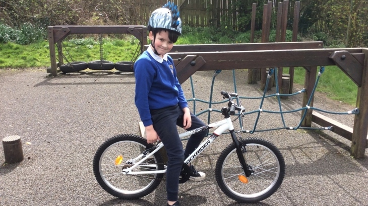 Harrison's cycling confidence has flourished since his one-to-one session with Johnny as part of the Active School Travel programme. Credit: McKinney Primary School