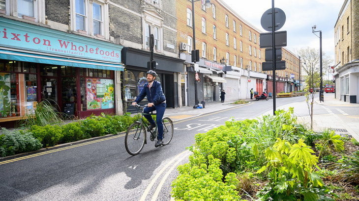 Edward embraces the joys of cycling through Lambeth's Low Traffic Neighbourhoods. Credit: J Bewley