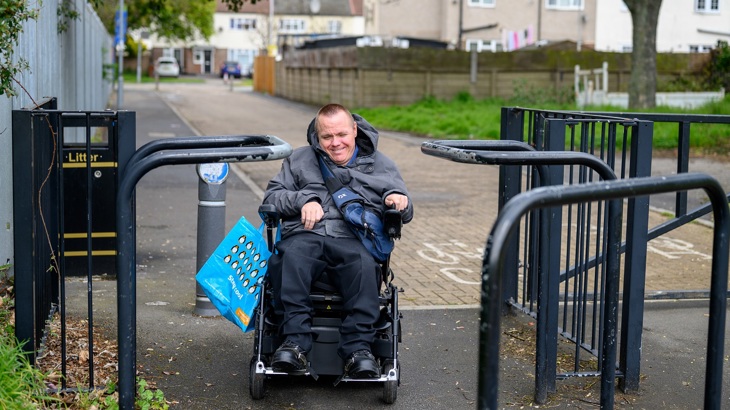 Dr Wesley Scott has cerebral palsy and uses a wheelchair. He is a dedicated advocate of accessible design, with a PhD in designing for disability. His expertise, combined with a lifetime of lived experience of the barriers facing disabled people, has been pivotal in helping Walk Wheel Cycle Trust to create urban spaces designed with everyone in mind.